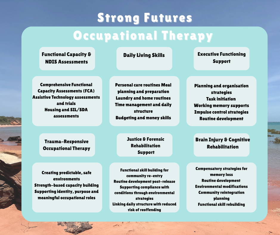 Grounded in culturally safe, trauma-responsive, and evidence-based practice, our team supports children, adolescents, and adults across disability, health, forensic, and community sectors throughout metropolitan, regional, and remote Western Australia. We provide comprehensive assessment, tailored therapy, and capacity-building programs shaped around each person’s goals and lived realities.